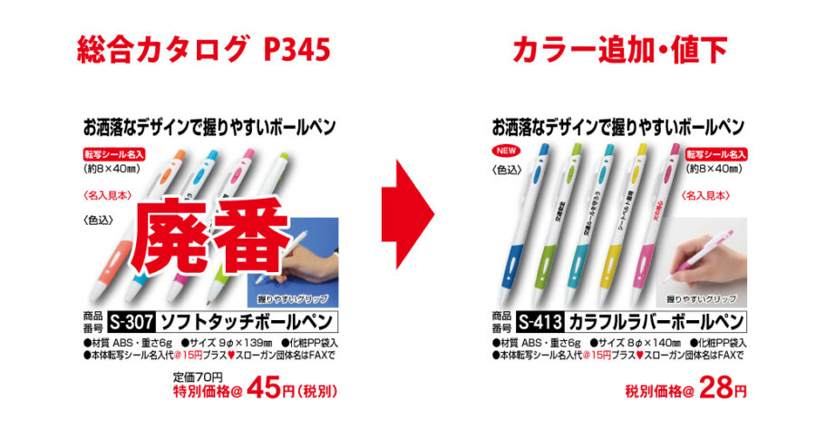 最新カタログ内で廃番・仕様変更された商品を掲載しています。